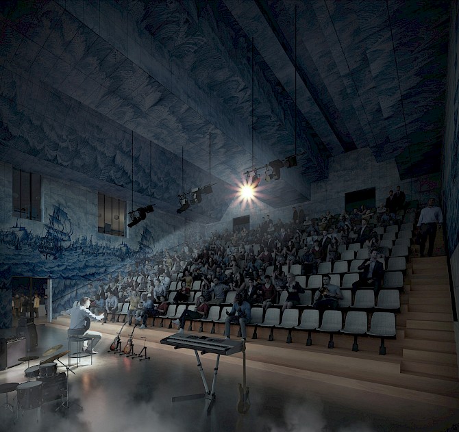 House of Delft will offer a wide range. With the Workshops with public program, with related work spaces with innovative companies, with alternative and creative (or innovative) hospitality, with a beautiful auditorium, and also for people who want to be close to the centre and its facilities. All equipped with high-quality sustainable materials and a parking garage that can accommodate about 45 cars, including a number of electric shared cars. House of Delft will literally become the city's "living room", both for residents of Delft and for visitors who can discover the city from this location.