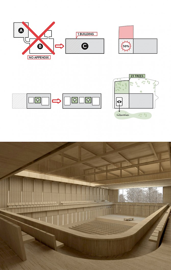 The expansion of the ensemble of the Meistersingerhalle with a new hall in connection with Nuremberg as the new European Capital of Culture 2025 leads us through the transformation of the existing ensemble, with respect to the existing Meistersingerhalle, into a new coherent, integrated cultural complex.