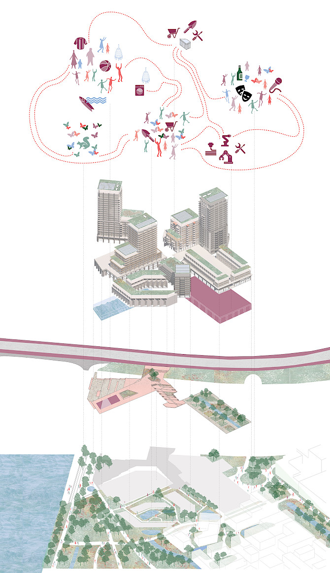 Programma: 647 woningen, 11.501 m2 bvo winkels, horeca, sport en lichte bedrijvigheid zoals meubelmakers en andere ambachtsbedrijven. Surfhal voor golf- en windsurfen, duiken en andere watergebonden activiteiten.