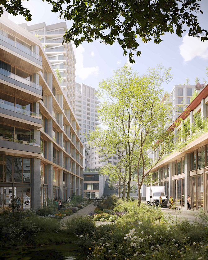 DUUX biedt als ‘stadgoed’ — een 21e-eeuwse vertaling van het landgoed — een combinatie van wonen, werken en ontspanning in een groene, klimaatbestendige wijk. Regenwater wordt opgevangen via groene daken en goten, en duurzame energie wordt lokaal opgewekt. Lichte industrie, horeca en de surfhal zorgen voor levendigheid, terwijl auto’s geparkeerd worden in een centrale hub aan de rand van het gebied. De stadgoedmaker verbindt mensen en ondernemers met elkaar.
