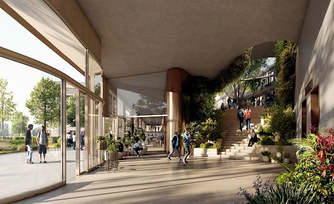 For the substructure of the residential tower, Boom Landscape designed a roof park and an inner garden with lots of green and trees in the open ground. On top of that, the entrance on the side of Bella Vistapark will have a winter garden with subtropical plants.