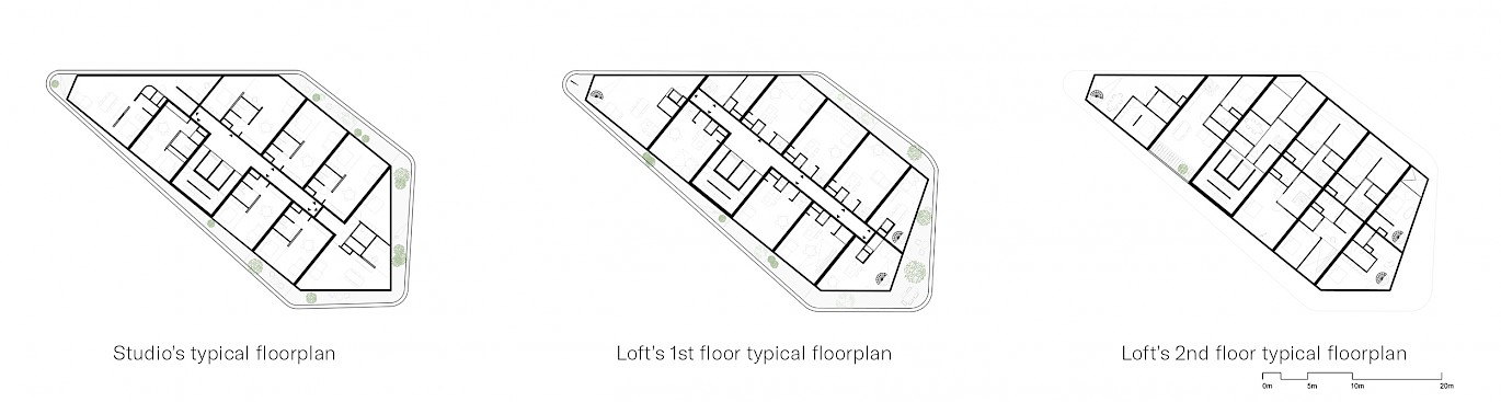 Elements will feature a broad mix of housing typologies. On the one hand, because this meets the demand of many Amsterdam residents. On the other hand, because many different housing types attract different target groups, which together can form an inclusive residential community. In this popular location, we build large and smaller homes, for rent and for sale, with high quality and private outdoor spaces. Especially noteworthy is the fact that the studios (middle segment with rent) are nicely situated between the owner-occupied homes, and that we offer the double-height loft at great height with buyer options for the floor plans, unique in the Netherlands.
