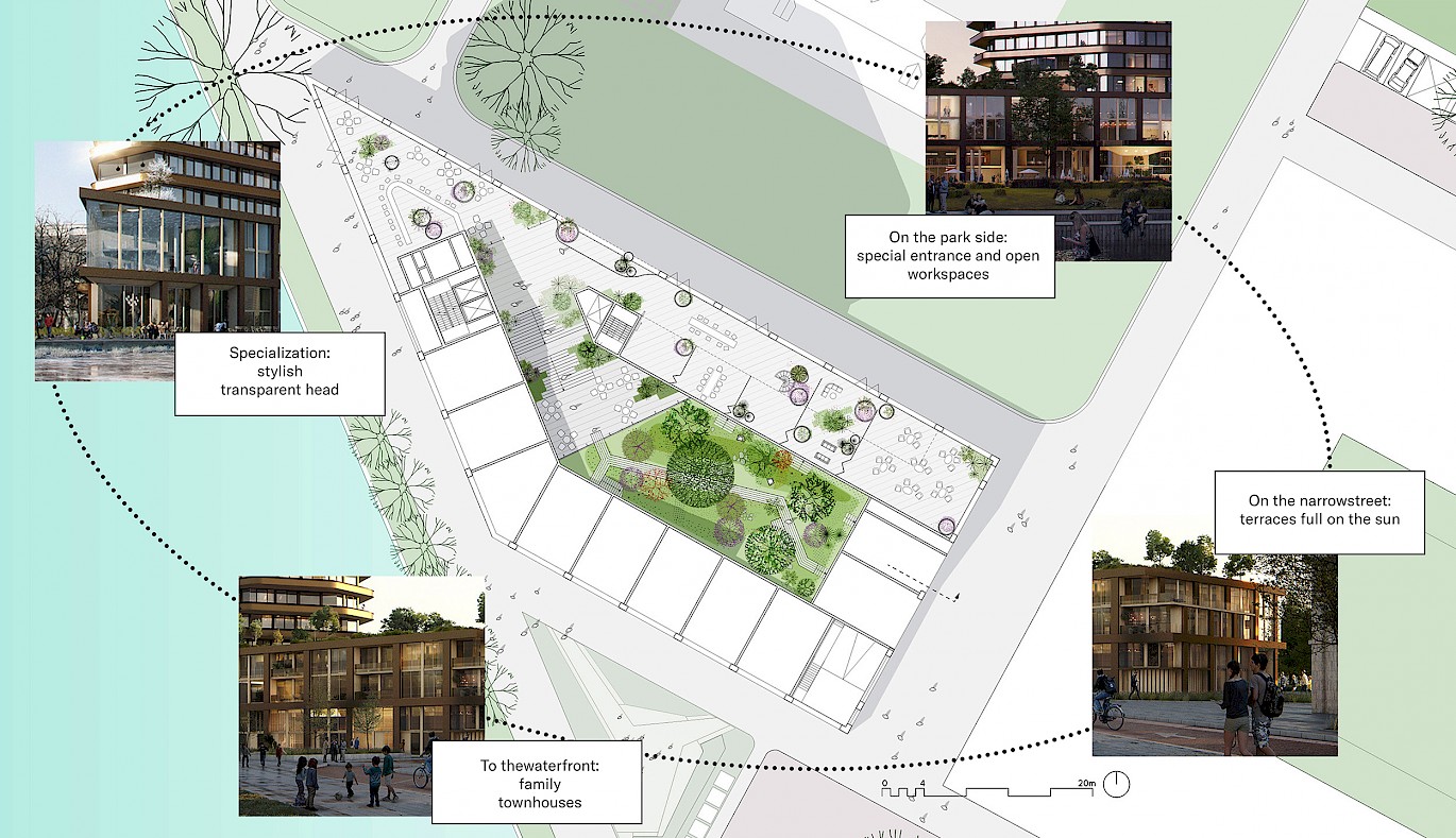 This should really turn it into a meeting place for the residents of the building and the neighbourhood. On the park side of the building, there will also be room for a commercial program, such as co-working, which can change into a more social program in the evening. At the head of the building will be "Bar Seasons", the facade of which can be fully opened when the weather is nice. This way, Elements responds optimally to the environment by respecting its neighbours as they are and opting for a good relationship.