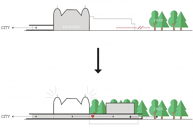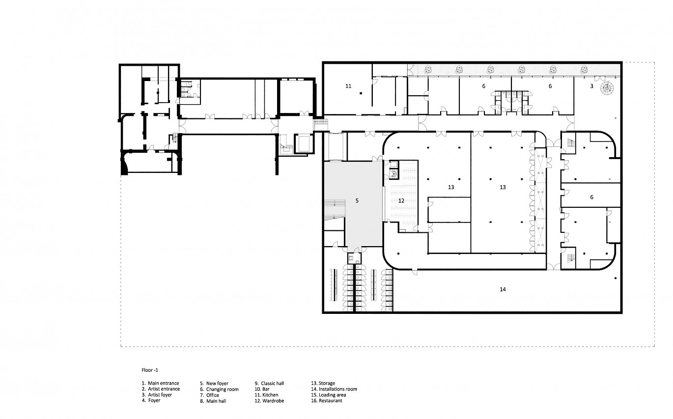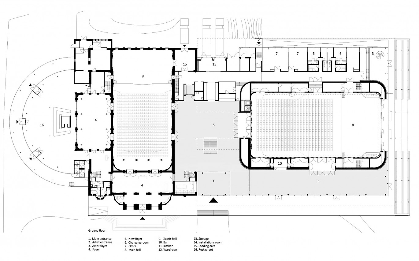 Since 1847 the concert halls of Musis Sacrum and its surroundings had taken on a range of different forms and positions in the park that reflected the short time needs of its operators, city officials and residents. The project consists of a renovation of the existing monument and a new extension with a long-term planning in mind. The extension features a large concert hall and supportive functions.