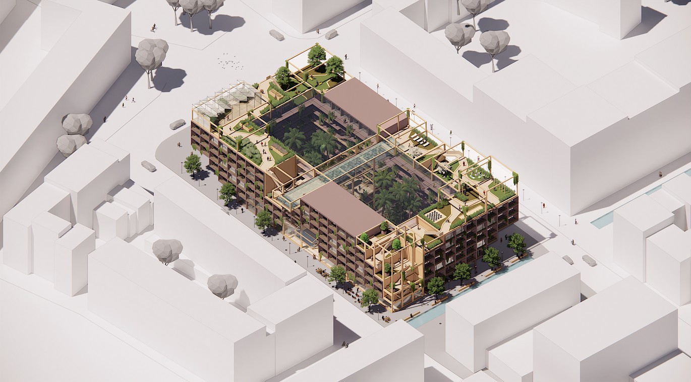 One of the thrusters of the current housing problem it's the difficult transition from elderly people to suitable houses. The ''Urban Residences'' offers the elderly the opportunity to return to the city and with each other in a healthy and social way to live. Collectivity, meeting and a healthy lifestyle are the most important principles for this housing concept. We aim for a mix of specific senior facilities with lively general functions.