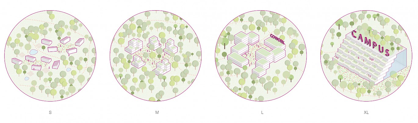 The Waldstadt plan stems from a metabolic approach. Instead of adopting a rational top-down structure, the Waldstadt design is adaptive and dynamic, able to respond to the changing needs of the city and its surroundings. The vision plan is based on pre-existing, natural structures. Within a distinct ecological structure, remarkable living-and working environments with different functions and typologies constitute the core of the proposal – each responding to the relationship between man and nature. These environments will include modular, biobased buildings that are able to adapt and change their functions according to future needs and changes.