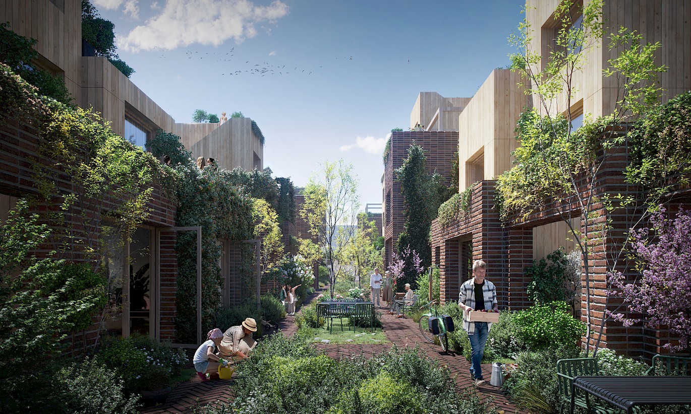De typische Vinex-verkaveling van woningen met bergingen en het achterpad, met een bedroevende ruimtelijke kwaliteit, wordt getransformeerd naar een levendig woon-,