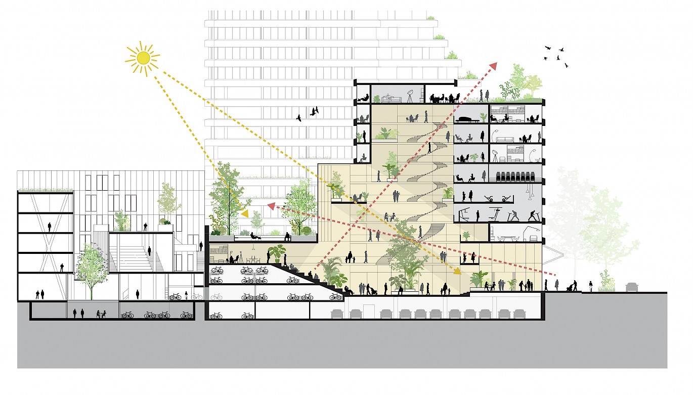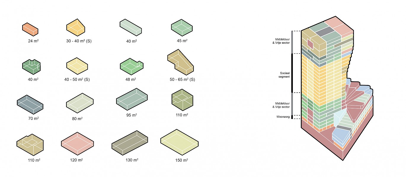 As society constantly changes into an increasing diverse populations, our buildings need to update and be flexible for future needs. We prepared the building for this flexibility by designing a hybrid building construction with a concrete core, an intelligent use of steel and wood to enable a diversity of apartments now and in the future.
