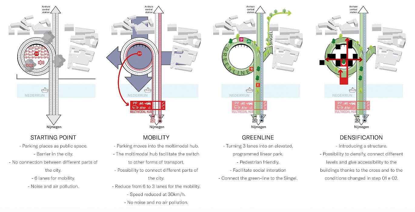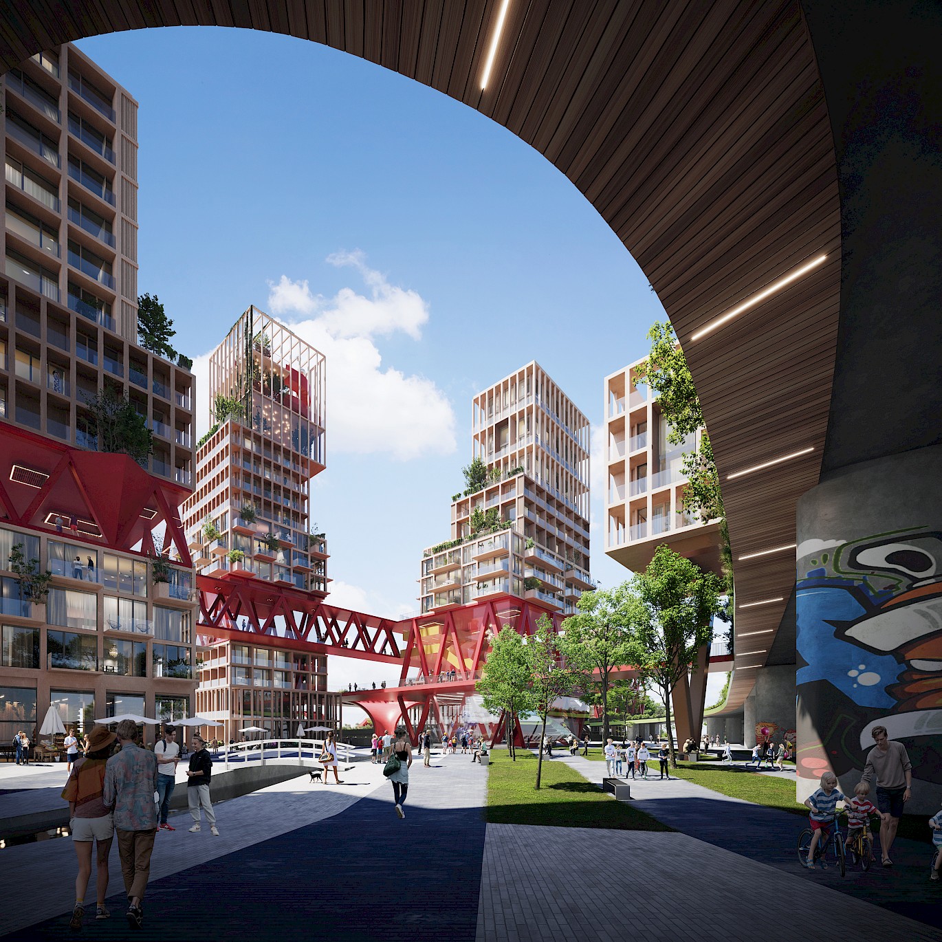 De visie transformeert de infrastructuur tot een aangename bestemming en verbindt bestaande wijken tot een nieuwe duurzame stad van hoog niveau.