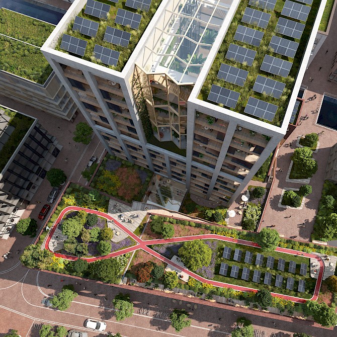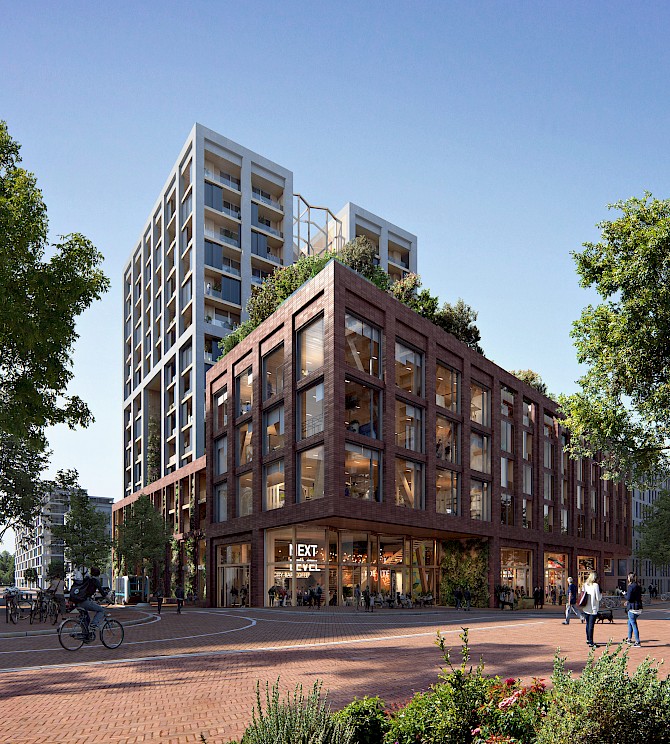 Next Level in de Sluisbuurt is een nieuwe stap in het integraal bijeenbrengen van wonen, werken, recreëren, winkelen, ontspannen, ontmoeten, ondernemen en duurzaamheid. Onze ambitie is gezond, stedelijk leven in al zijn facetten naar binnen halen. Een nieuwe vorm van wonen en werken. Waarbij vergaande differentiatie en gedeelde ruimtes zijn geïntegreerd met weelderig groen. Een groen lint dat zich door het hele gebouw slingert en uitnodigt tot bewegen, gezond eten en vitaal leven.