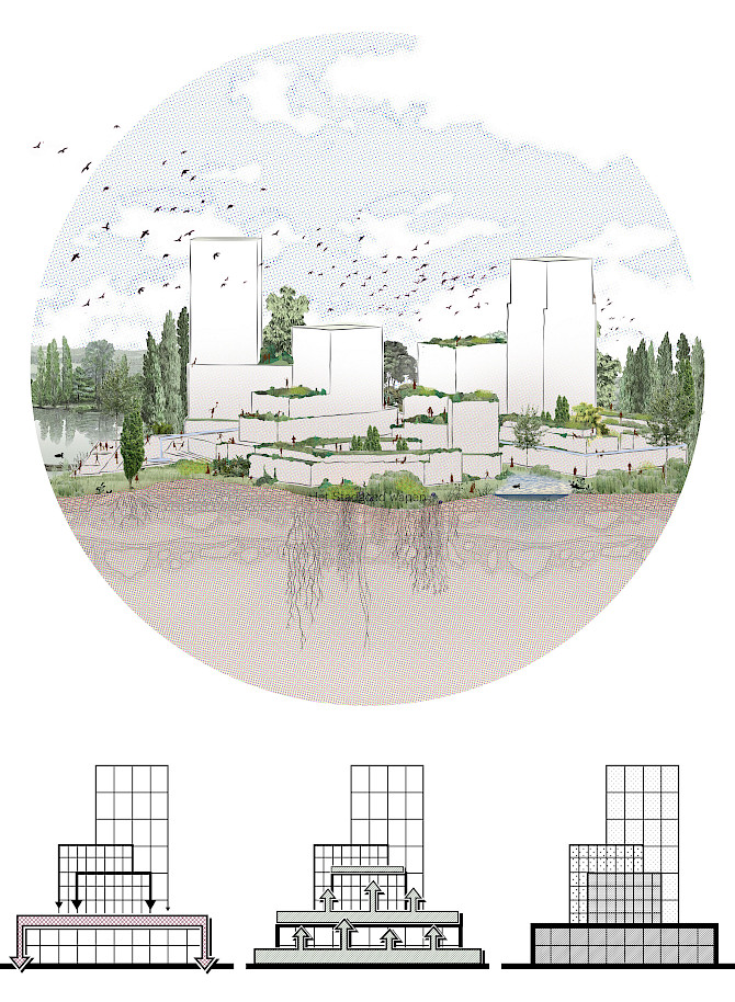 Het verhaal van DUUX is gelaagd. De historische ondergrond met landgoederen en landschappelijk reliëf vormt een belangrijke inspiratiebron. Hoogteverschillen tot negen meter in het maaiveld worden geïntegreerd in het ontwerp van de gebouwen, en zorgen voor een cascade van regenwater en groen. Ook de rijke diversiteit aan woningen en werkplekken draagt bij aan een sociaal gelaagde buurt.